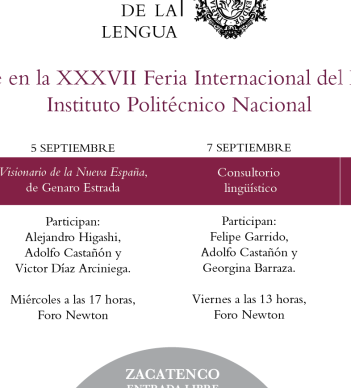 La Feria Internacional del Libro del Instituto Politécnico Nacional se llevará a cabo del 31 de agosto al 9 de septiembre, y contará la participación editorial y presencial de la Academia Mexicana de la Lengua y de sus miembros.