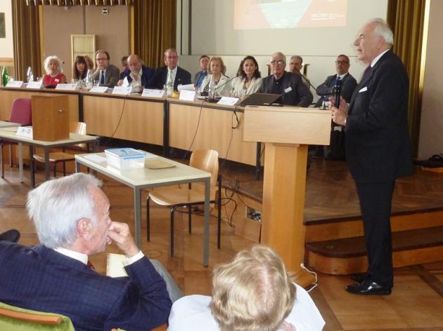 El Duque de Soria, acompañado en el Congreso de Münster por el presidente de la FDSCCH, Rafael Benjumea, y el secretario general de esta Fundación, José María Rodríguez-Ponga, concluyó su intervención ante la Asamblea deseando que el hispanismo “sirva cada vez más como eficaz instrumento para favorecer la convivencia entre culturas y, en definitiva, sirva para que las nuevas generaciones puedan afrontar con mayor esperanza el futuro”.
