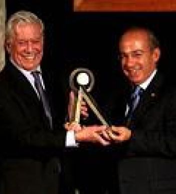Mario Vargas Llosa recibió, de manos del presidente Felipe Calderón, el Premio Internacional Carlos Fuentes a la Creación Literaria en el Idioma Español. En su discurso de recepción, el autor de La ciudad y los perros destacó el aporte particular de Fuentes al boom latinoamericano y el valor universal de toda su obra literaria.